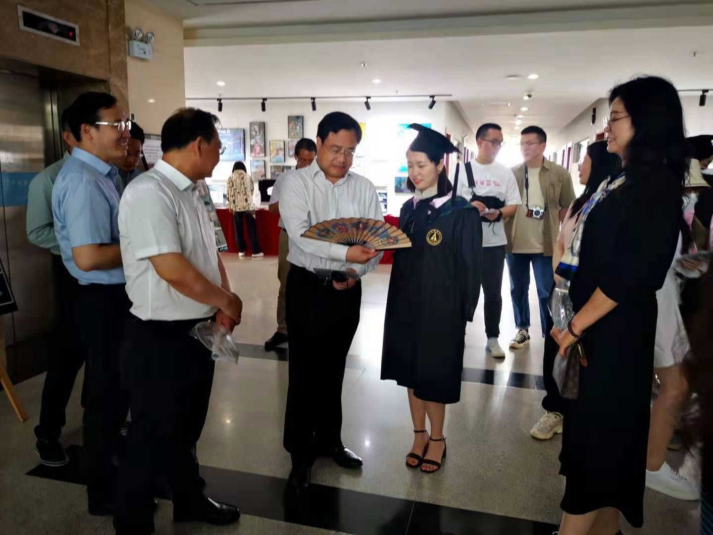 校党委副书记、纪委书记侯振发在致辞中向为毕业作品展提供支持的师生家长们表示感谢,他指出:时值建党百年之际,中韩学子紧扣时代命题,创新选题,融入艺术审美,弘扬社会主义核心价值观,彰显主旋律,传播正能量,这次作品展不仅是毕业生专业水平的自我检验,凸显了学院创新发展的理念;也是学校推进新文科建设,提升美育实践,强化人文学科融通发展的成果。侯振发还勉励即将毕业的2021届毕业生,希望同学们坚持初心使命、汲取新知识,掌握新技术,实事求是,锐意进取,继续创作出更优秀的影像、动漫作品;希望同学们在以后的学习工作中,对自己有信心,对未来做事要有决心,对成就自己的事业要有耐心,不断培育宽和、仁爱的美好心灵,做一名勇于创新,为社会做贡献的优秀人才。