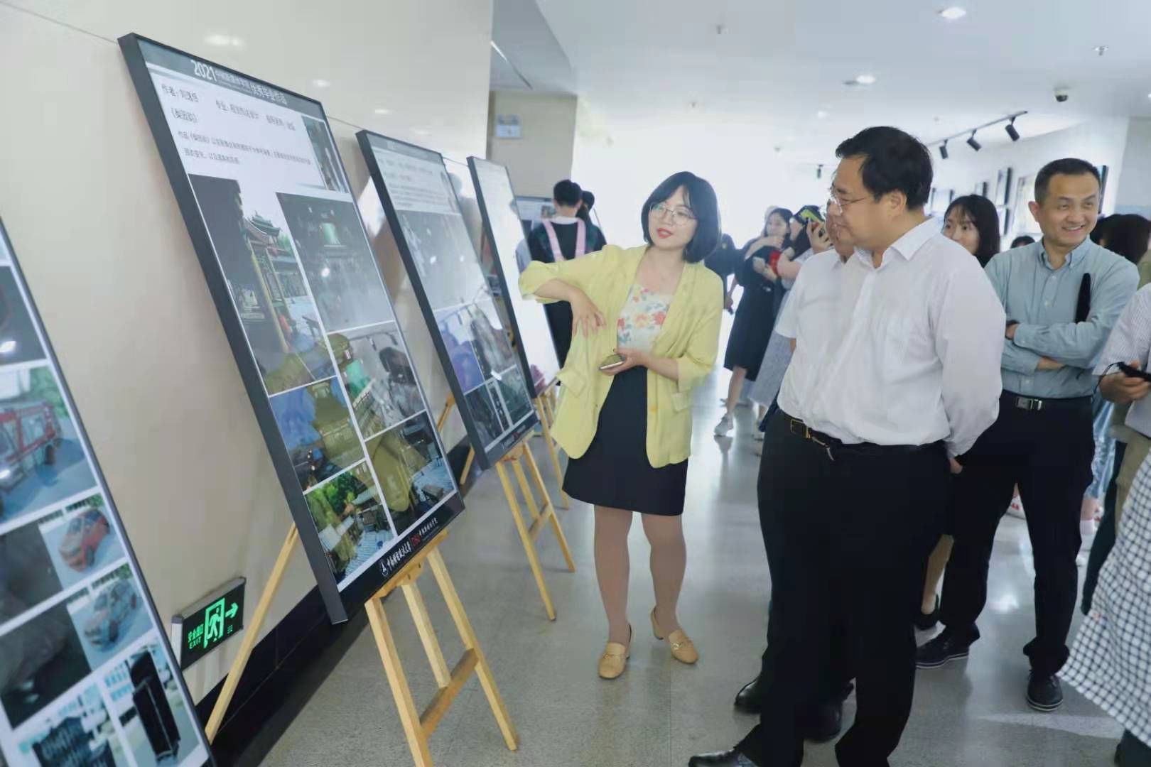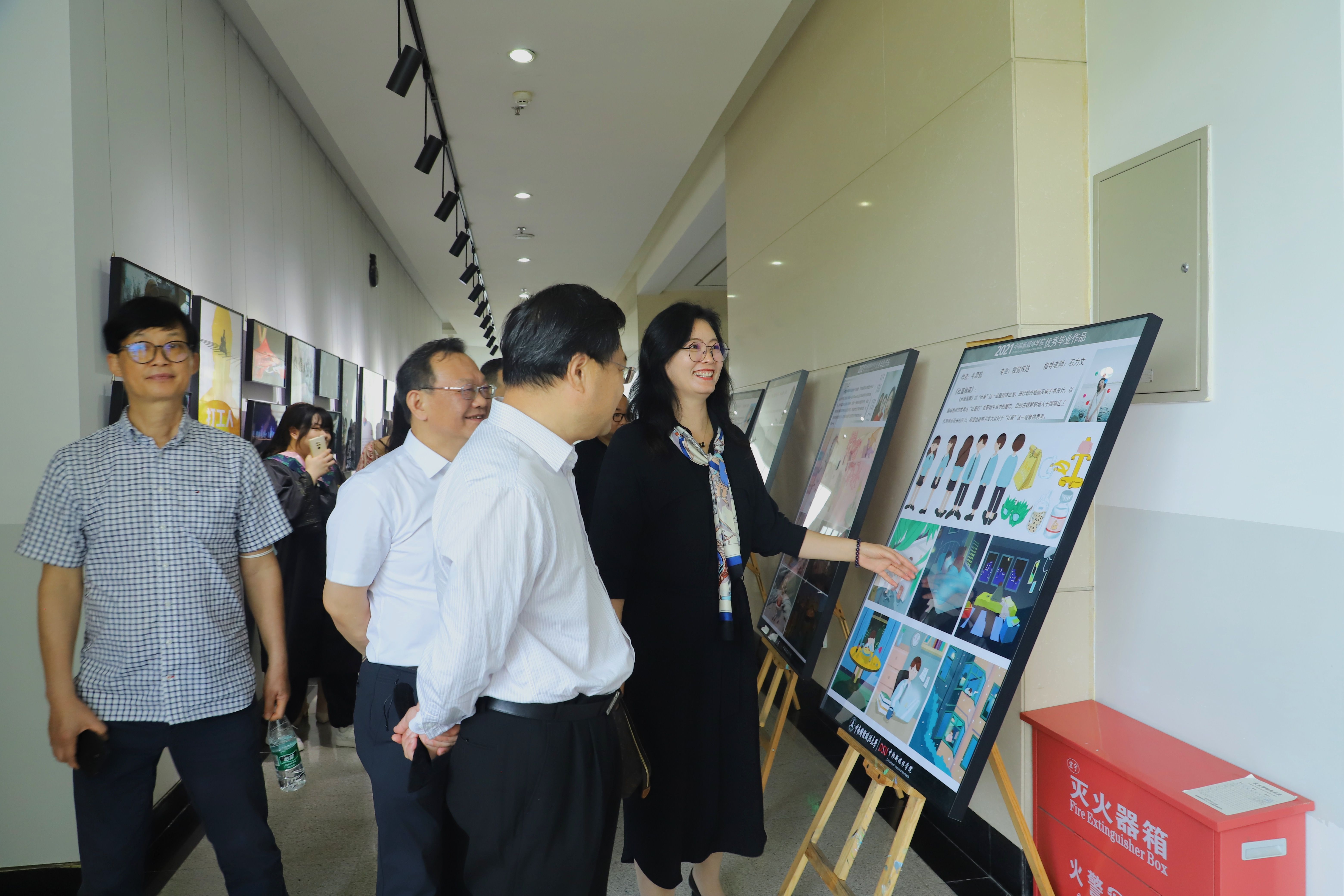 开幕式结束后,参会领导和嘉宾一起前往文济楼二楼三楼展厅参观毕业作品。本次展览共展2021届毕业生创作的出插画、二维动画短片、三维动画短片、文创产品、电影短片等作品80余个,题材内容丰富、富有时代气息,饱含着蓬勃的艺术激情和丰富的艺术想象力,以多元的形式、不同的视角为大家呈现一场视觉盛宴.