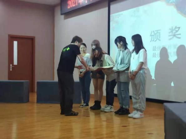 学生工作部部长兼人武部部长余小朋、就业指导中心主任温习为获奖学生颁奖