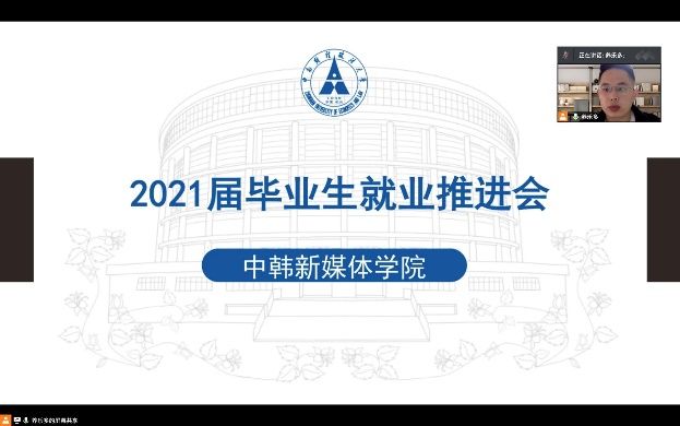 (通讯员黄蕾)5月28日下午6点30分,中韩新媒体学院2021届毕业生第四期就业推进会在线上举行,学院党委副书记刘晓燕、毕业班辅导员黄祯辉、尤志兵和全体毕业生参加。会议由尤志兵主持。
