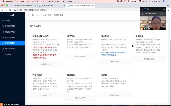 尤志兵就毕业生的户口、档案和报到证填报等问题进行详细介绍,同时向同学们讲解新版就业系统网签操作流程。黄祯辉老师向同学们介绍学院目前的就业率、当下就业形势和各类就业政策等,引导大家端正就业观,鼓励“先就业,再择业”。黄祯辉从中韩合作办学项目的基本情况、学院办学理念和办学特色、培养目标和项目培养质量等四个方面详细介绍了学院的基本情况,带领同学们在毕业前重温学院历史发展沿革。