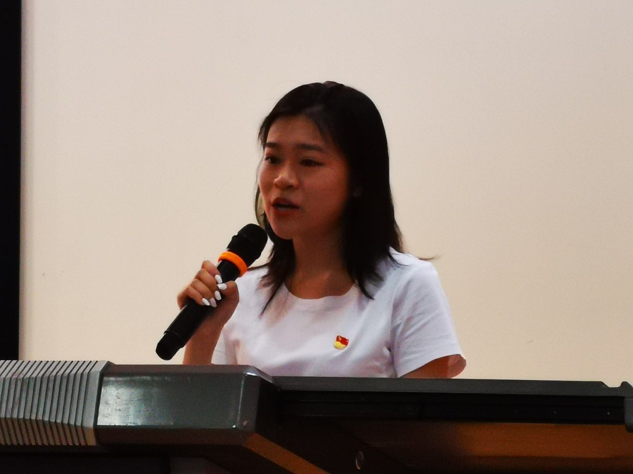 影像1901班的蒋雨荷同学作为新党员代表上台作表态发言。她表示,在中国共产党成立100周年之际成为一名预备党员,大家都倍感光荣、无比振奋。青年的个人命运与国家、民族的命运紧紧相连,新一代有志青年将坚持砥砺精神,锤炼过硬本领,保持奋进姿态,以百年华诞为新的奋斗起点,勿忘昨天的苦难辉煌,无愧今天的使命担当,不负明天的伟大梦想。