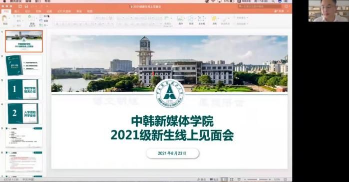 (通讯员 孙嘉忆)为做好2021级新生入学教育,帮助新生进一步了解学校、学院,提前部署新生秋季开学报到安排。2021年8月24日,中韩新媒体学院召开2021级新生线上见面会,21级辅导员尤志兵、王沐,8名辅导员助理和全体新生及家人参加。会议由尤志兵老师主持。