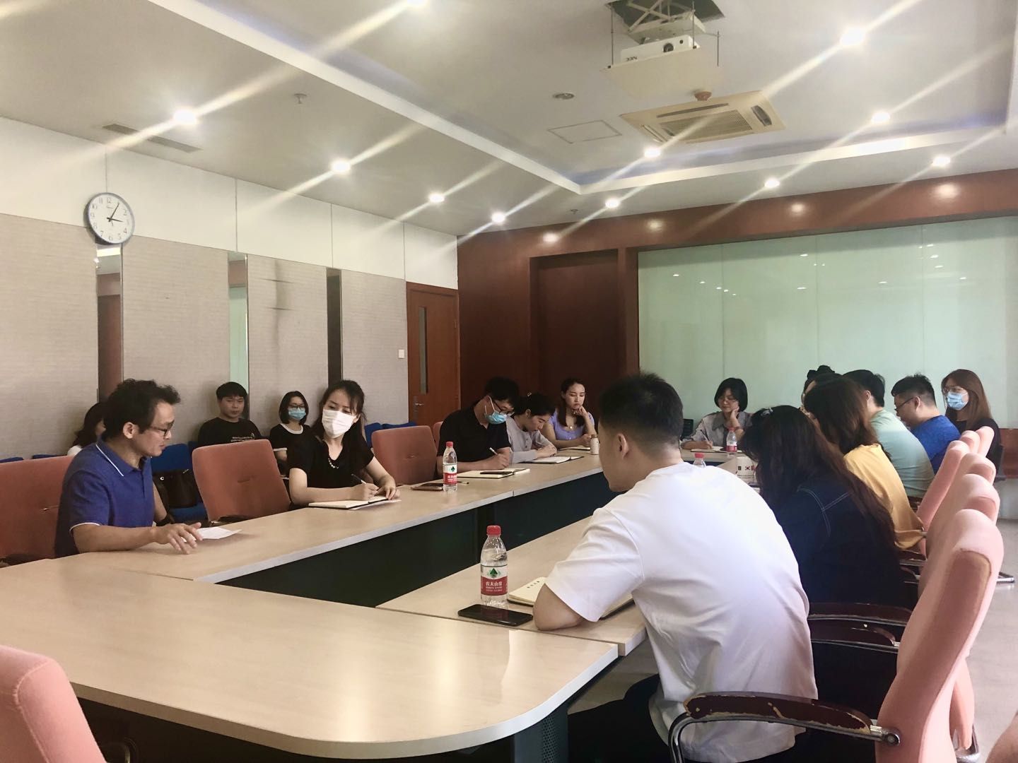 9.29日下午,武汉理工大学艺术与设计学院张黔教授在中韩新媒体学院411会议室,举行题为“艺术类课题的选定与研究“的学术讲座。中方全体教师到场聆听学习,讲座由教师代表伍婷主持。