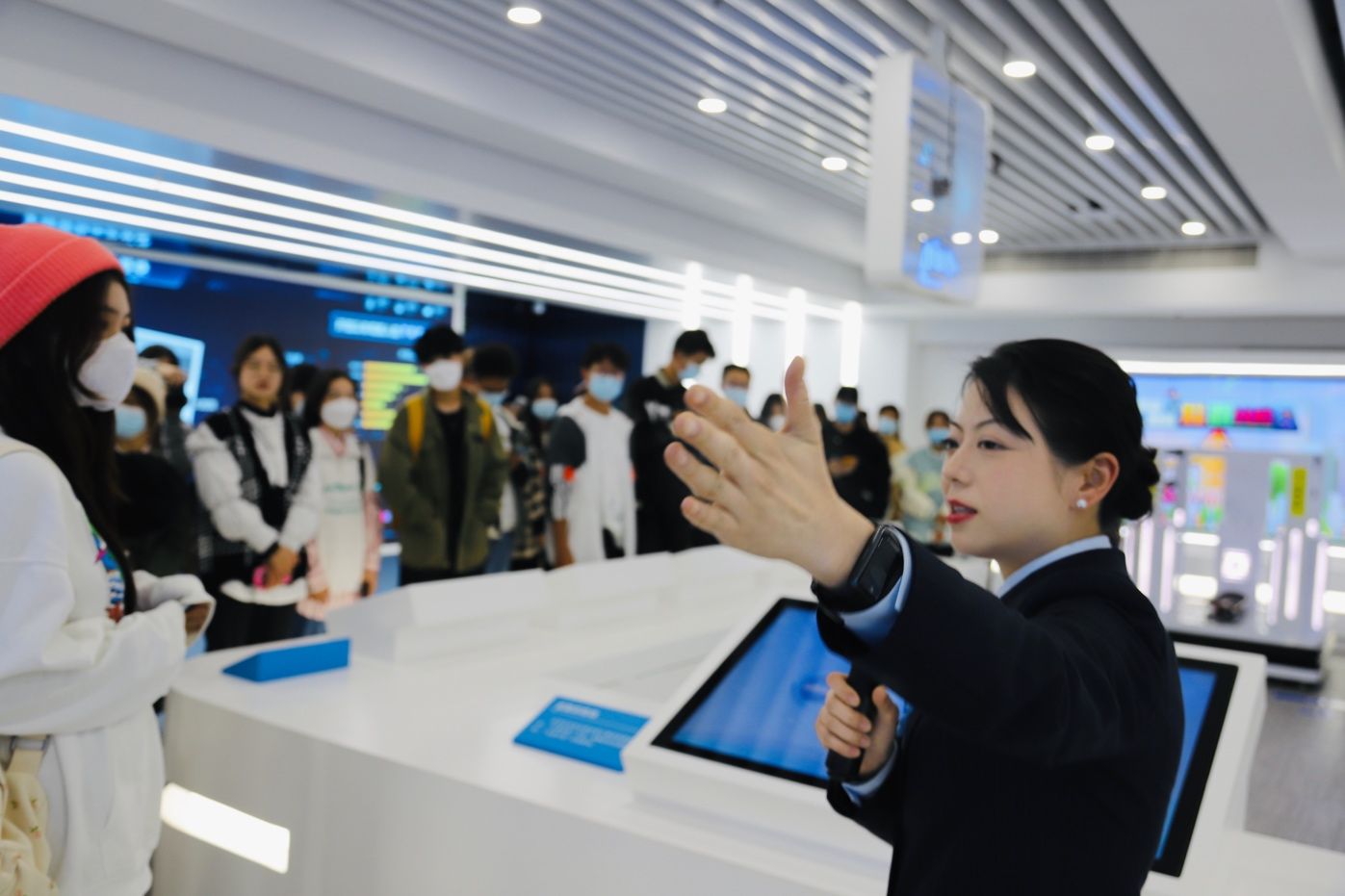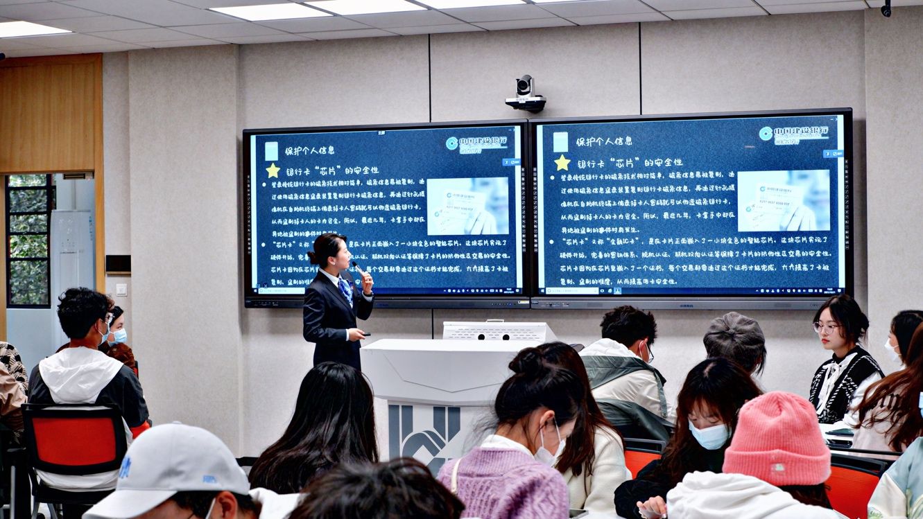 第二部分是听取“金融第一课”。一楼主展厅参观完毕后,学生们一起来到了位于二楼的智慧教室。学生们分别从“守护你的金融信息”、““越贷越烦恼”、“正确防范电信诈骗”三个方面进行学习。学生们学到了很多实用的金融相关知识,比如要学会在身份证复印件上做签注、如何查询个人信用报告、如何处理初次非恶意逾期造成的信用不良记录等,两个小时的参观与讲解让学生们受益匪浅。