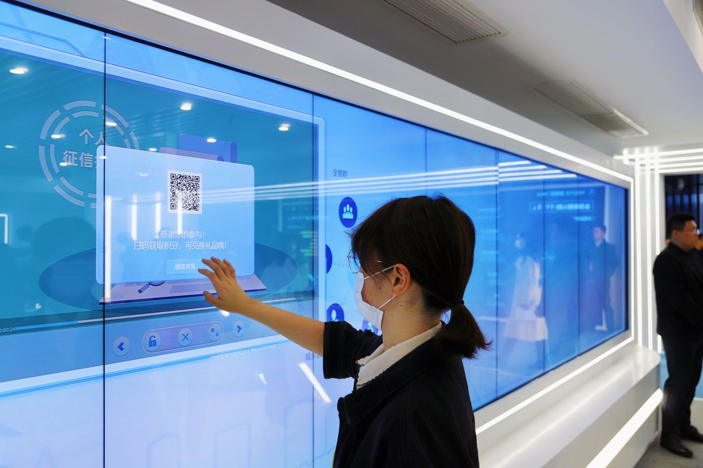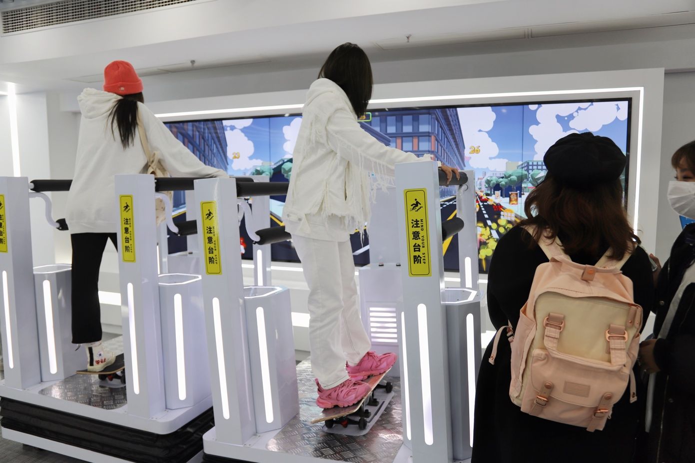 第一项为参观金融教育示范基地。活动主办方运用电子科技将宣讲变得生动有趣,将金融知识与科技进行了完美融合。学生们先后体验了“金融历史沿革”、“幸福人生”、“理财规划金字塔”、“VR反诈骗”、“金融你我他”、“智慧问答”、“蜂巢翻版”、“躲避金融风险跑酷”共8个项目。妙趣横生的环节和小游戏让同学们感受到学习金融知识的乐趣所在。并且在高科技陈列展厅内,随处可见躲避风险等标语,真正贯彻以人为本的理念,将金融安全落到实处。
