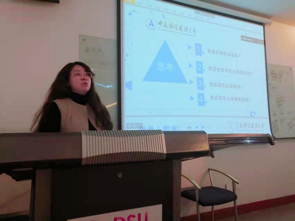 王淑珺分别对怎样选择合适的学校及专业、考研信息应该怎样获取、报考流程以及考试时的注意事项等进行了讲解。