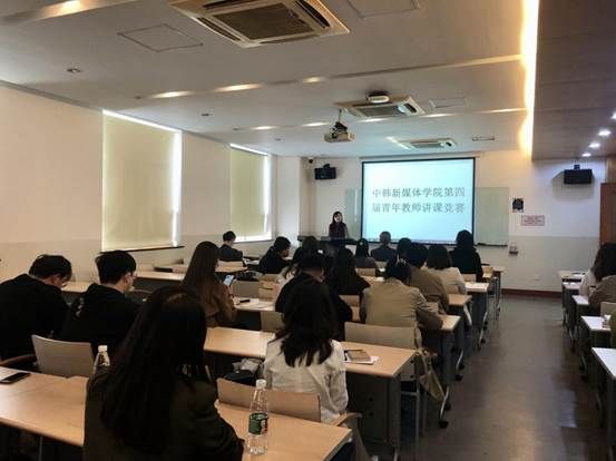 (通讯员 陈紫薇)11月18日下午,中韩新媒体学院在文济楼311开展“第四届青年教师讲课竞赛”活动。中韩新媒体学院党委书记祝振炎、韩方院长金彦河出席,副院长赵博雅、董玉芝,院长助理黄喜雨、电影学教研室方茜老师、视觉传达设计专业伍婷老师担任评审小组成员,比赛由副院长董玉芝主持。