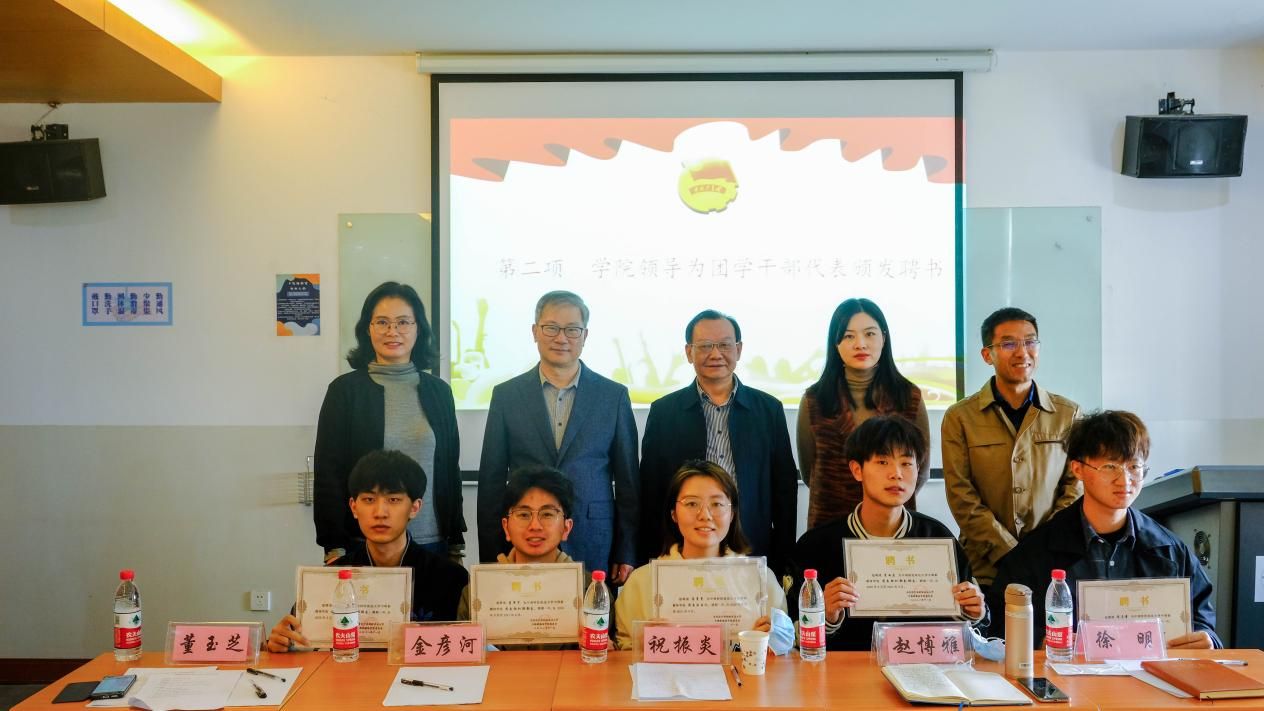 会议伊始,全体起立奏唱共青团团歌。学院领导为团学干部代表颁发聘书,肯定了团学干部们长期以来的辛勤付出及取得的工作成果,并号召同学们学习他们身上能力与努力兼得、责任与使命兼具的优良品质。