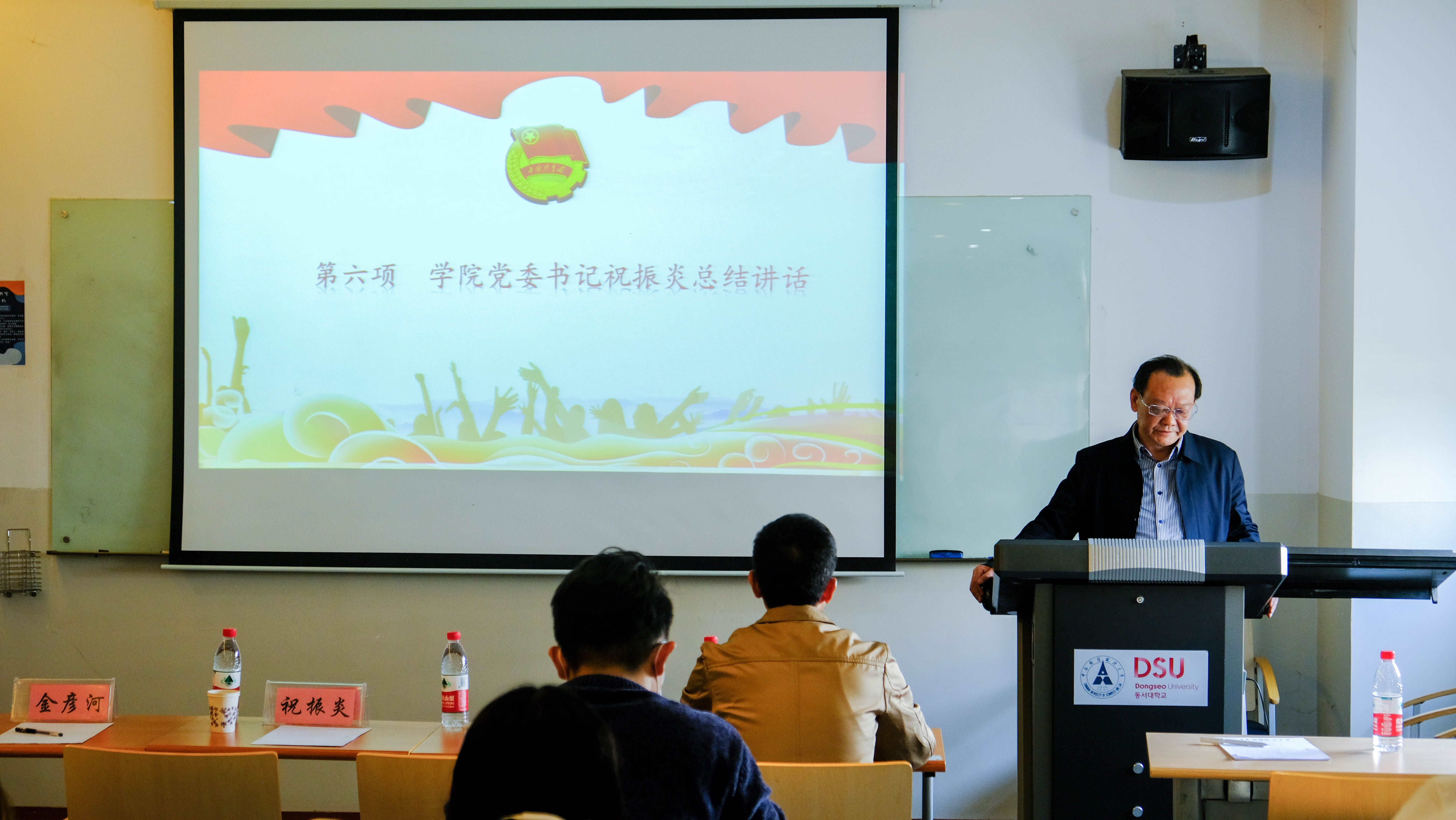 学院党委书记祝振炎代表学院党委对第七届团学组织干部长期以来的辛勤工作给予充分的肯定和高度赞扬,对新当选的第八届团学干部表示信任和支持。
