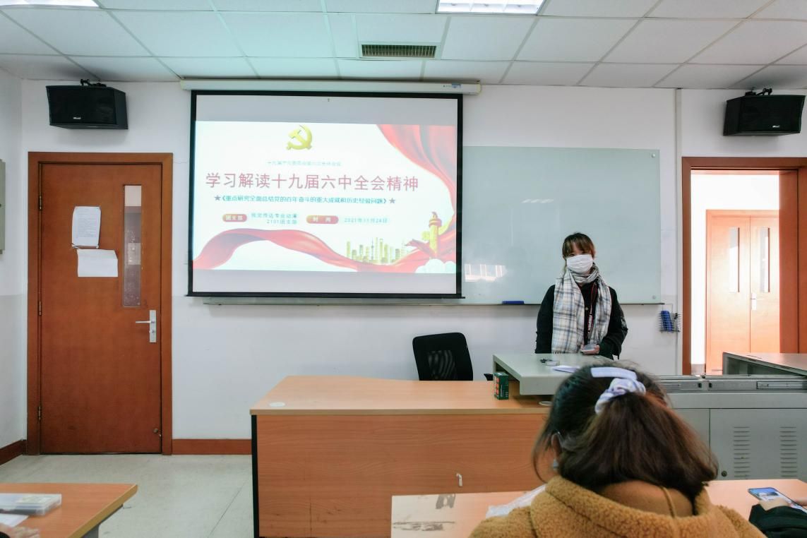 11月24日,动漫2101班团支部以《重点研究全面总结党的百年奋斗重大成就和历史经验问题》为题,开展了学习解读十九届六中全会精神的团日活动。