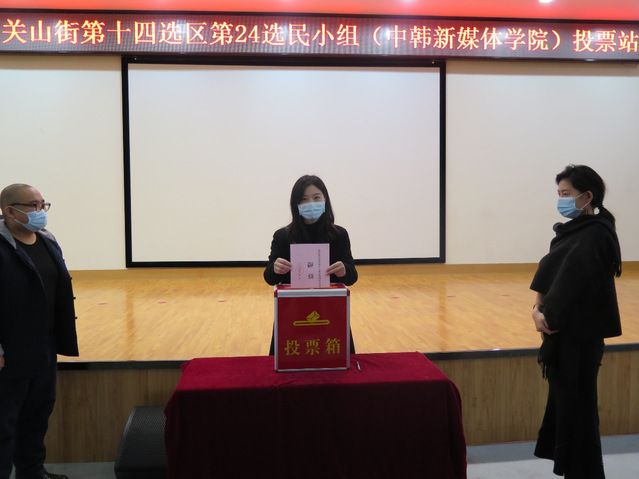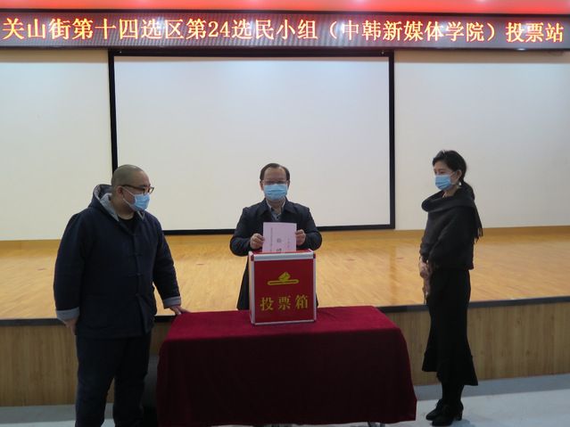 学院党委高度重视此次人大代表换届选举工作,根据法定程序对选举工作周密部署、精心组织、认真实施。成立了中韩新媒体学院洪山区人大代表选举工作领导小组,制定工作方案,于11月30日召开中韩新媒体学院洪山区人大代表选举工作领导小组工作布置会议;做好选民资格审查、登记、公布;全面介绍代表候选人,使选民对候选人知人、知名、知情;组织召开投票选举动员培训,发放选民证和委托证;设立投票站,组织投票选举。选举领导小组及全体工作人员严格按照选举步骤和程序开展工作,各负其责、互相配合,确保了我院人大代表选举工作的顺利进行。