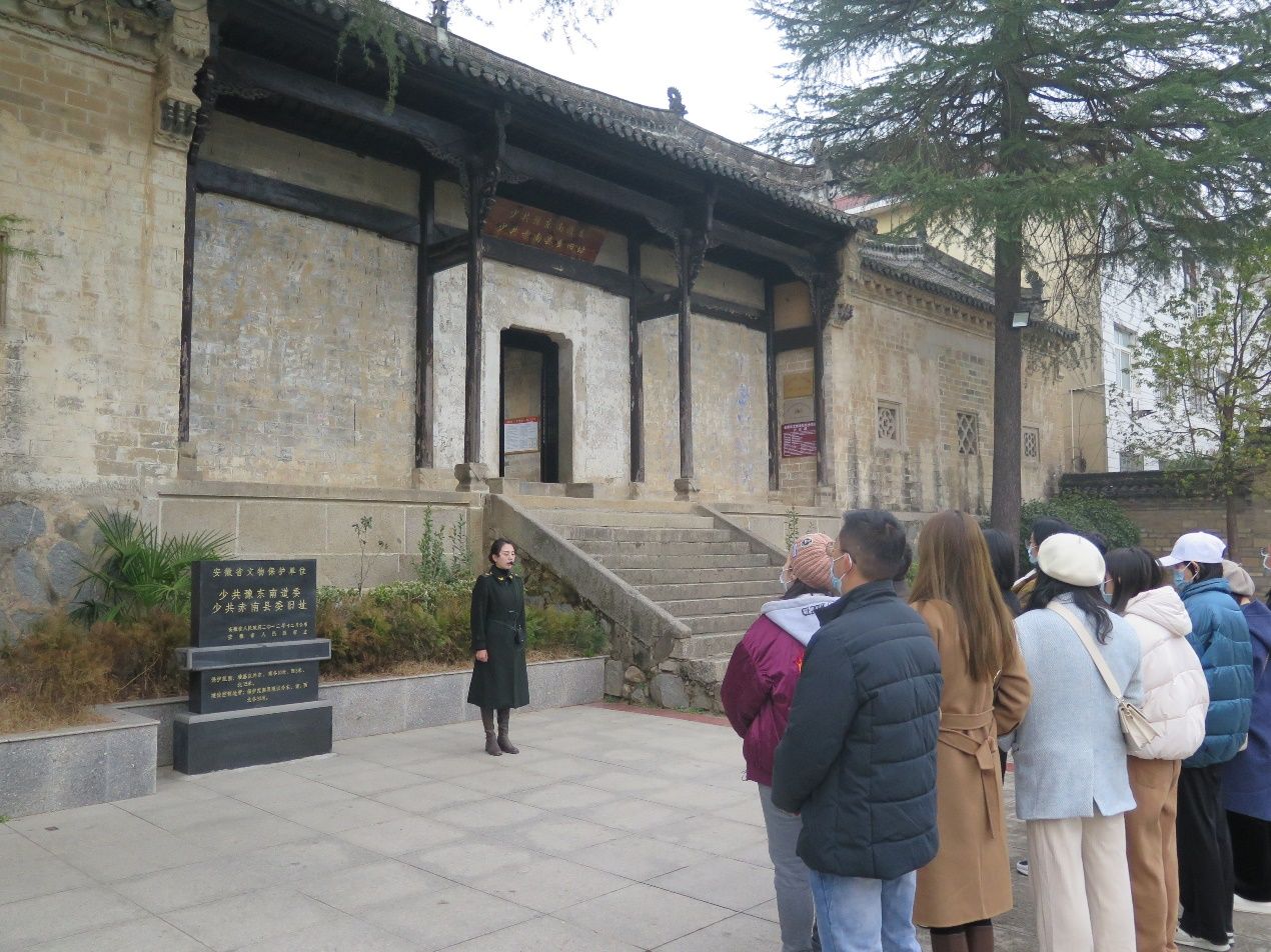 新闻网讯(通讯员 毛承东)为进一步坚定理想信念,传承红色基因,铸牢忠诚使命,在建党100周年之际,中韩新媒体学院组织教工党员开展“学党史、践初心、担作为”金寨红色革命教育活动,于2021年12月10日前往金寨红色教育基地,助推党史学习教育走深走实,让党史学习教育“活起来”。
