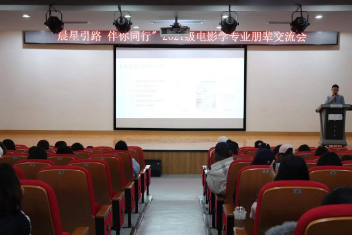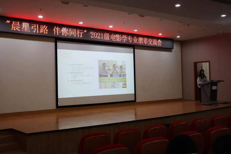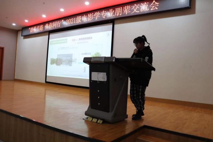 (通讯员 王佳彤、胡静怡)2021年12月23日下午16时,中韩新媒体学院2021级电影学专业“晨星引路,携手前行”朋辈交流会在文济楼201教室顺利举行。本次交流会邀请到了2018级张雨昕、胡静怡和2019级王若妍三位优秀学生代表进行交流分享。本次活动由尤志兵老师主持,2021级电影学专业全体学生参加。