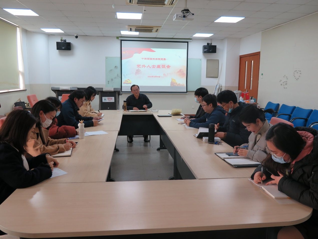 为进一步贯彻落实学校加强高校统战工作的部署要求,促进学院民主管理监督工作制度化,充分发挥党外知识分子的智慧和作用,学院党委就2022年的全面工作向党外人士征求意见。2021年12月30日下午,在文济楼406会议室召开党外人士座谈会,党委书记祝振炎、副院长赵博雅与党外知识分子参加了会议,党委书记祝振炎主持会议并讲话。