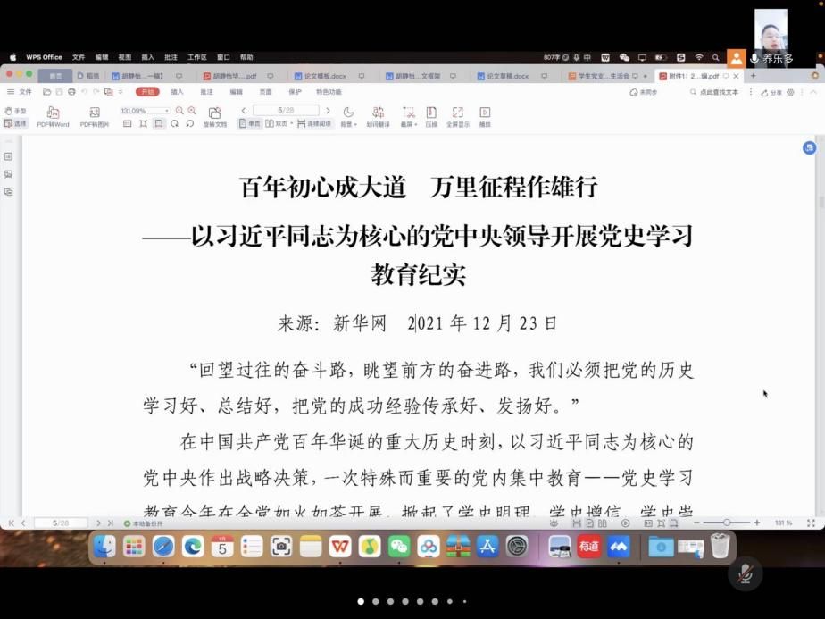 首先,在尤志兵同志的带领下,党支部成员认真学习《习近平作出重要指示强调:不断巩固拓展党史学习教育成果 团结带领全国各族人民满怀信心奋进新征程建功新时代》、《百年初心成大道 万里征程作雄行——以习近平同志为核心的党中央领导开展 党史学习教育纪实》、《习近平法治思想是全面依法治国的根本遵循和行动指南》三个文件,开展深入的理论学习。沈晗丹和赵浩博两位同志积极发言,提出作为大学生党员,应该不忘初心,以史为鉴,时刻发挥先锋模范作用,争做一名合格的共产党员。
