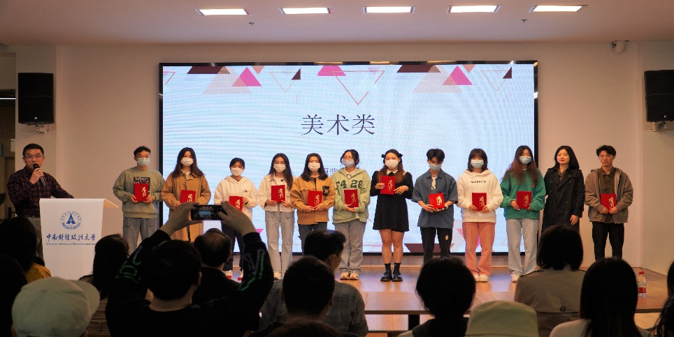 作品反映出了学生的学术水平、生活感受和创作理念,更在参赛选手中挖掘出一批具有较大创新能力的优秀创作者。在开幕式上,获奖学生代表依次上台,由与会领导为他们颁奖。