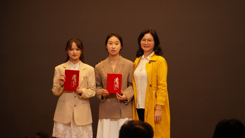 除艺术作品奖项之外,本次作品展还特设优秀策划奖,颁发给学院创业实践部和学术部部长——动漫1904韦颖洁同学和影像1902王若妍同学,表彰全体策展小组学生为之付出的努力和心血。