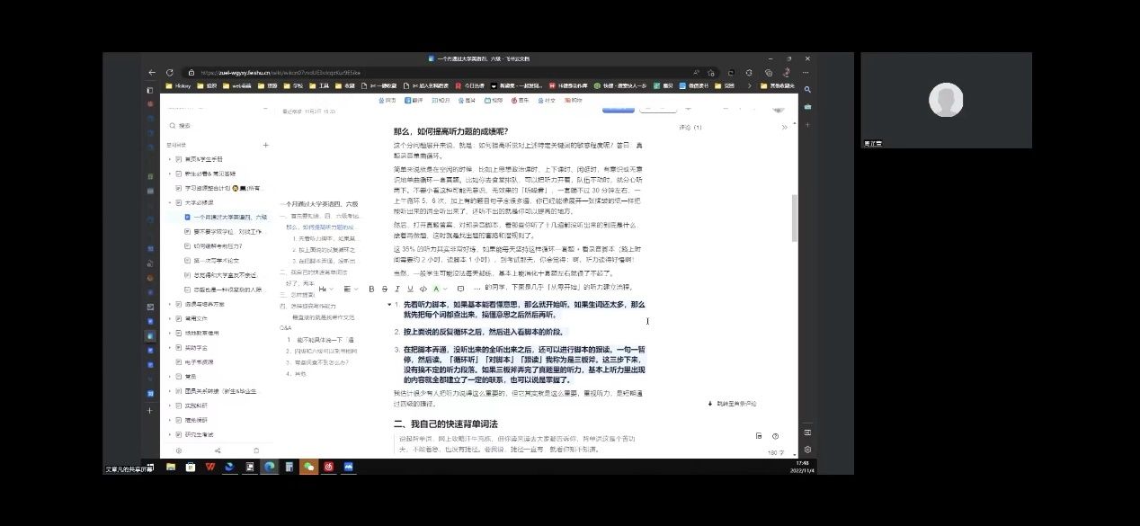王沐老师简要介绍本次帮扶活动的特色及优势,鼓励大家珍惜此次宝贵的学习经历。她根据自身英语学习经历向同学们分享了一些关于单词记忆法和备考方法的经验,利用多次重复和刷题的方式记忆单词比单纯记忆更有效,同时强调了合理安排复习计划的重要性。