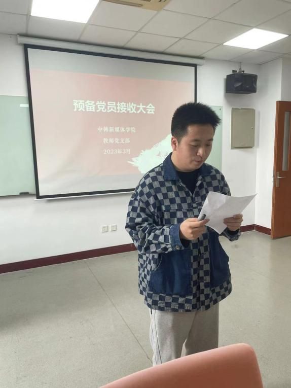 (通讯员 许芊)为深入学习贯彻党的二十届二中全会精神和2023年全国两会精神,中韩新媒体学院教师党支部于3月30日在文济楼406会议室开展了 “学思践悟新思想,团结奋斗开新局”主题党日活动暨预备党员接收大会。会议由教师党支部书记马志远主持,支部全体党员参加了活动。