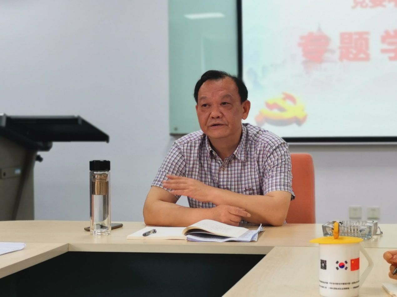 祝振炎领学了《求是》杂志发表文章《坚定文化自信,建设社会主义文化强国》,这是习近平总书记在全国宣传思想工作会议上发表的重要讲话以及有关文化自信的重要论述节录。讲话指出,文化自信是一个民族、一个国家以及一个政党对自身文化价值的充分肯定和积极践行,并对其文化的生命力持有的坚定信心。中国有坚定的道路自信、理论自信、制度自信,其本质是建立在5000多年文明传承基础上的文化自信。祝振炎指出,中韩新媒体学院作为中外合作办学项目制学院,始终坚持社会主义办学方向,在建设学院文化、树立文化自信方面抓住两个重点:一是弘扬践行“厚德、精艺、合作、创新”的院训,二是培养树立敢于胜利的精神品质。祝振炎强调,学院必须利用好学科优势、专业优势以及技术优势,在继承和弘扬中华优秀传统文化的基础上,赓续红色血脉,勇于实践,不断提升提升,用中华五千年的优秀传统文化涵养学院文化。