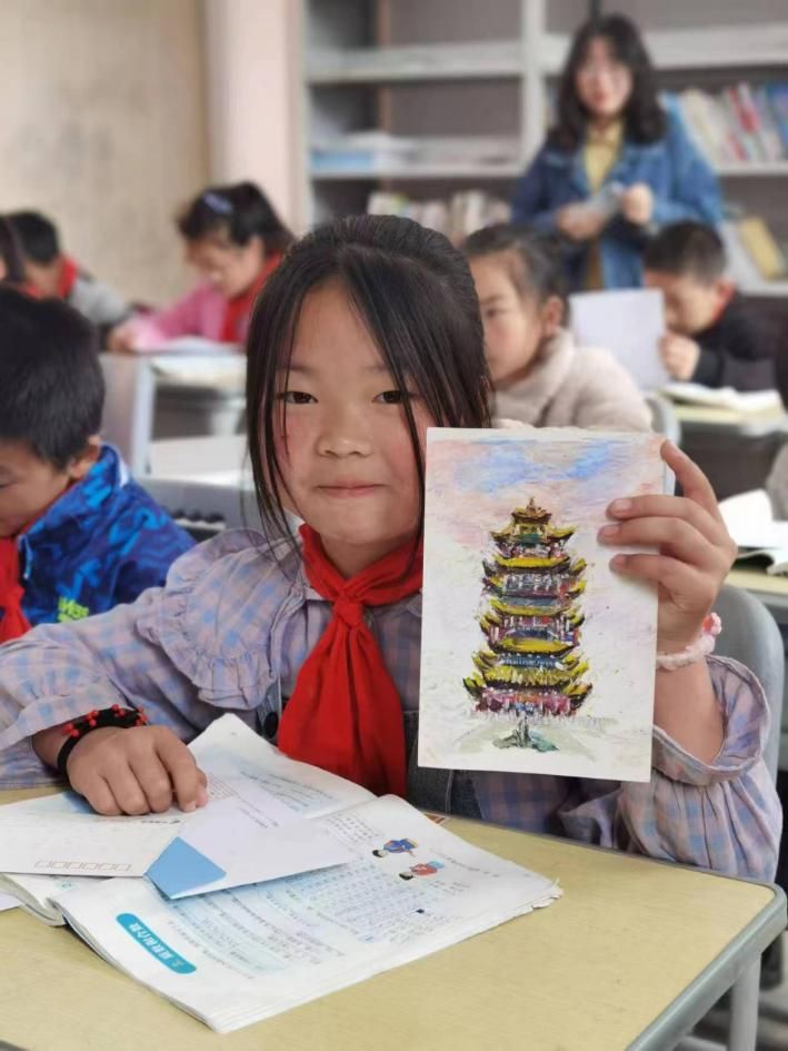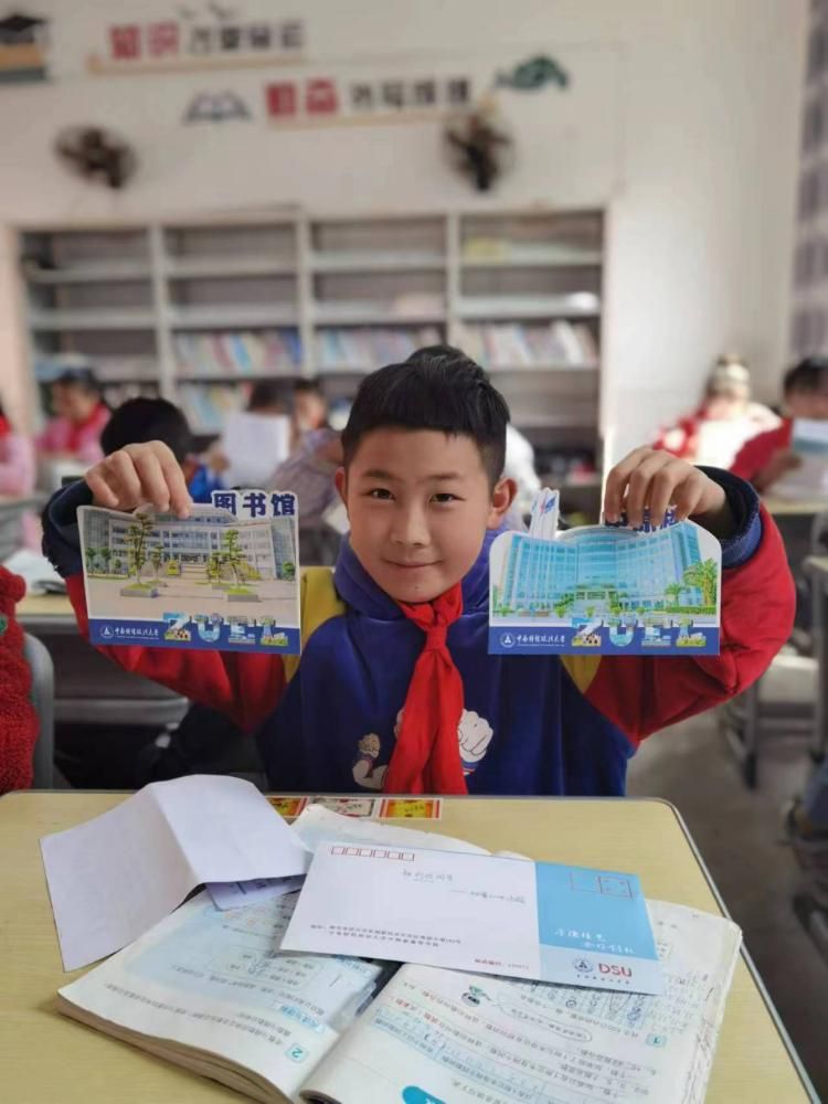 箭坝小学与我院志愿者收到彼此信件后的合影展示