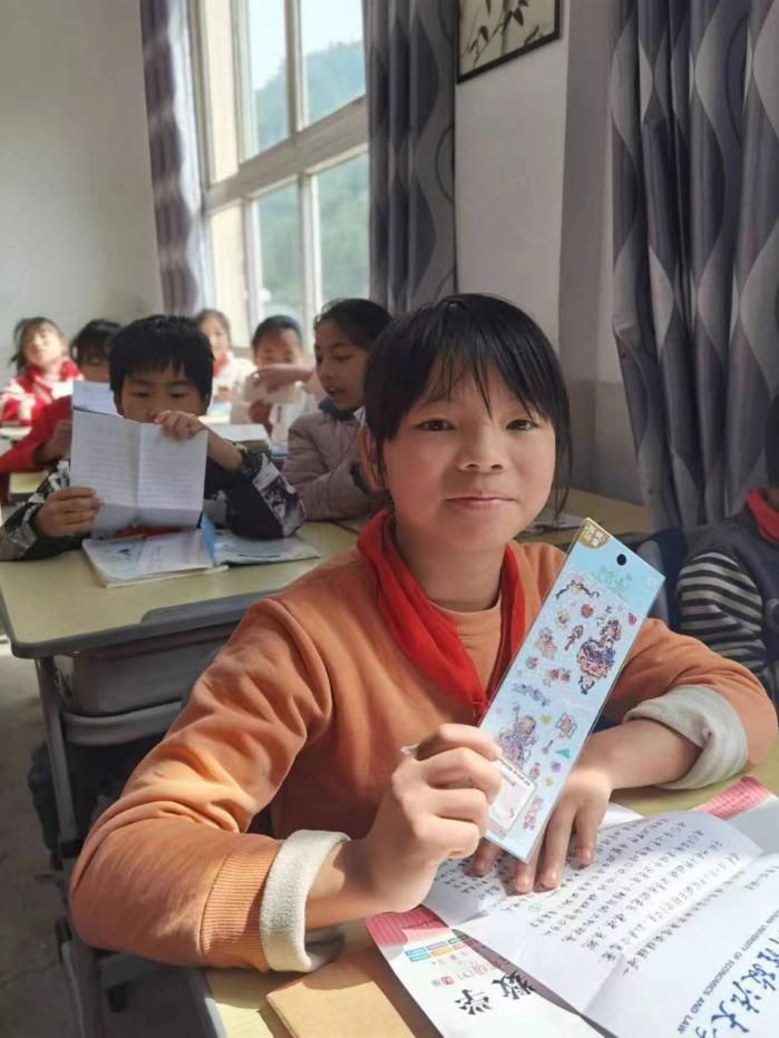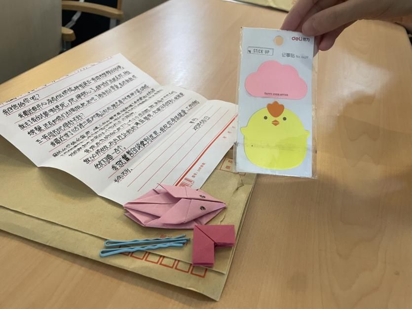 尺牍传情,见字如面,收到回信,志愿者们迫不及待地拿出信件阅览起来,小朋友们在信中介绍了身边的点点滴滴,有的介绍了盐津的风土特产;有的分享了箭坝小学的美景美事,有的述说自己的学习生活,有的还随信寄来了明信片、糖果、自己画的画、最喜欢的漫画书……每一封信件、每一句稚嫩的话语都充满着孩子们的真诚与童趣。
