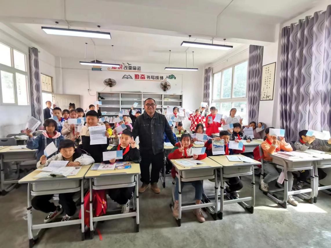 作为教育工作者,黄祯辉老师从“为什么要去远方”到“如何去远方”,例举自己的出国工作经历,循循善诱地鼓励大家种下一颗想要去远方的种子“正是因为大学这个平台,来自五湖四海的我们才能有机会今天一起站在这里,所以通过读书,走出物理意义上的大山,同时也走出心理层面的大山,去看远方。”最后,驻村书记刘祚衡——也是信件抵达箭坝小学学生手里“最后一公里”的“信差”,他结合平时在下乡家访考察过程中看到问题,总结了师生分享的经验,勉励在座的各位同学,“不要被短视频、游戏和网络小说所禁锢,珍惜时间,有付出才有回报”,语句虽质朴却表达出他对孩子们真挚的关怀与殷切的厚望。