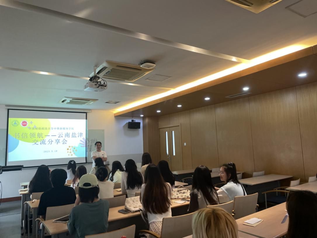5月18日,中韩新媒体学院学生党支部在文济311教室举办了“书信领航——云南盐津”交流分享会。党支部积极推进结对帮扶工作,此前,支部的30名志愿者已经细心地为箭坝小学五年级一班的每位小朋友写了信,并统一进行了邮寄。