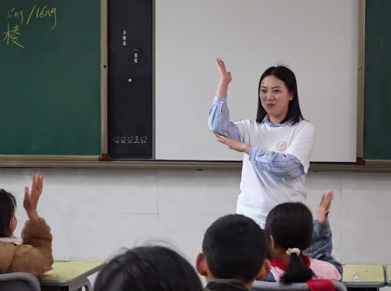 师生一行与外国语学院支教志愿者胡丹交流支教心得
