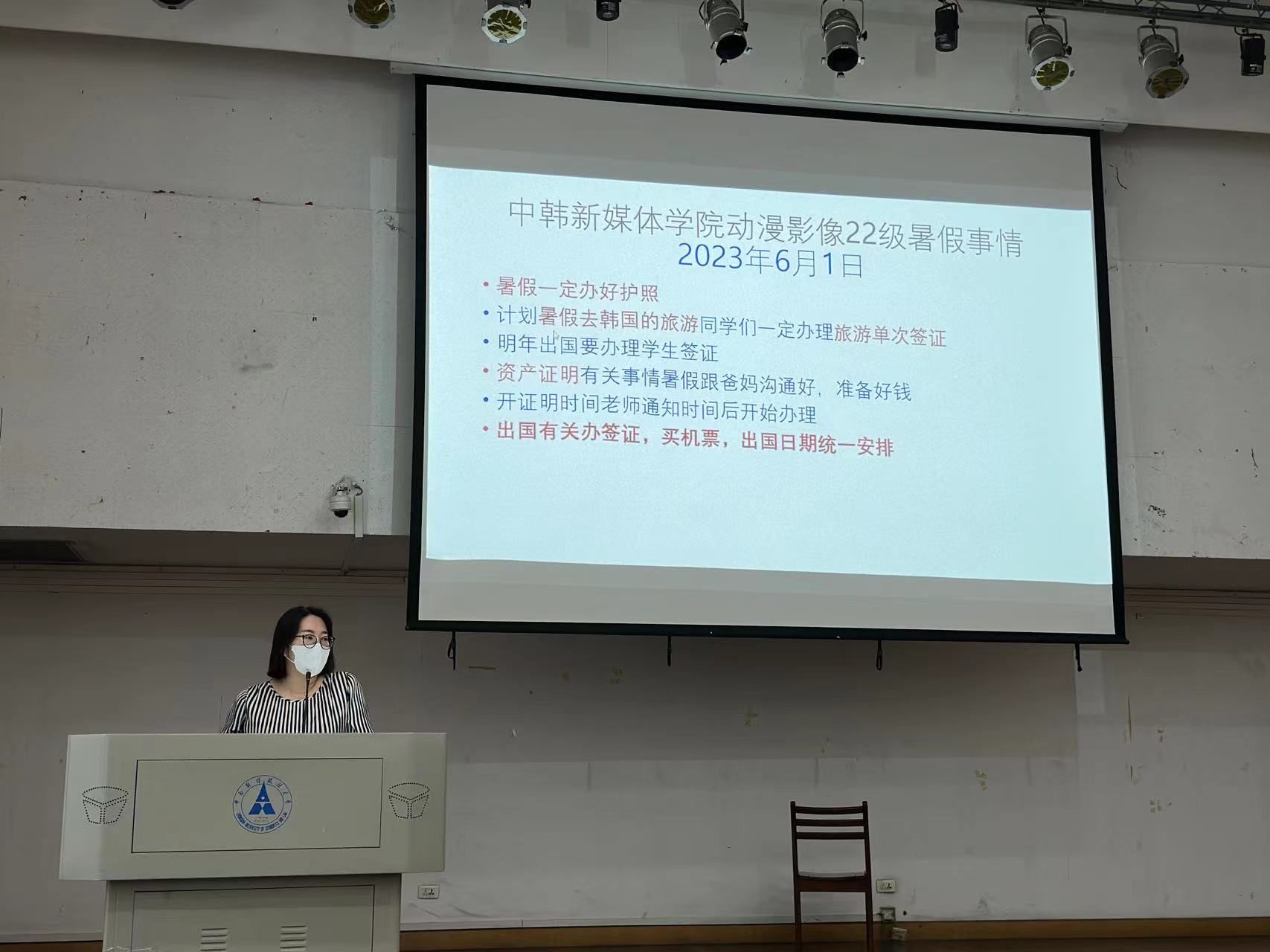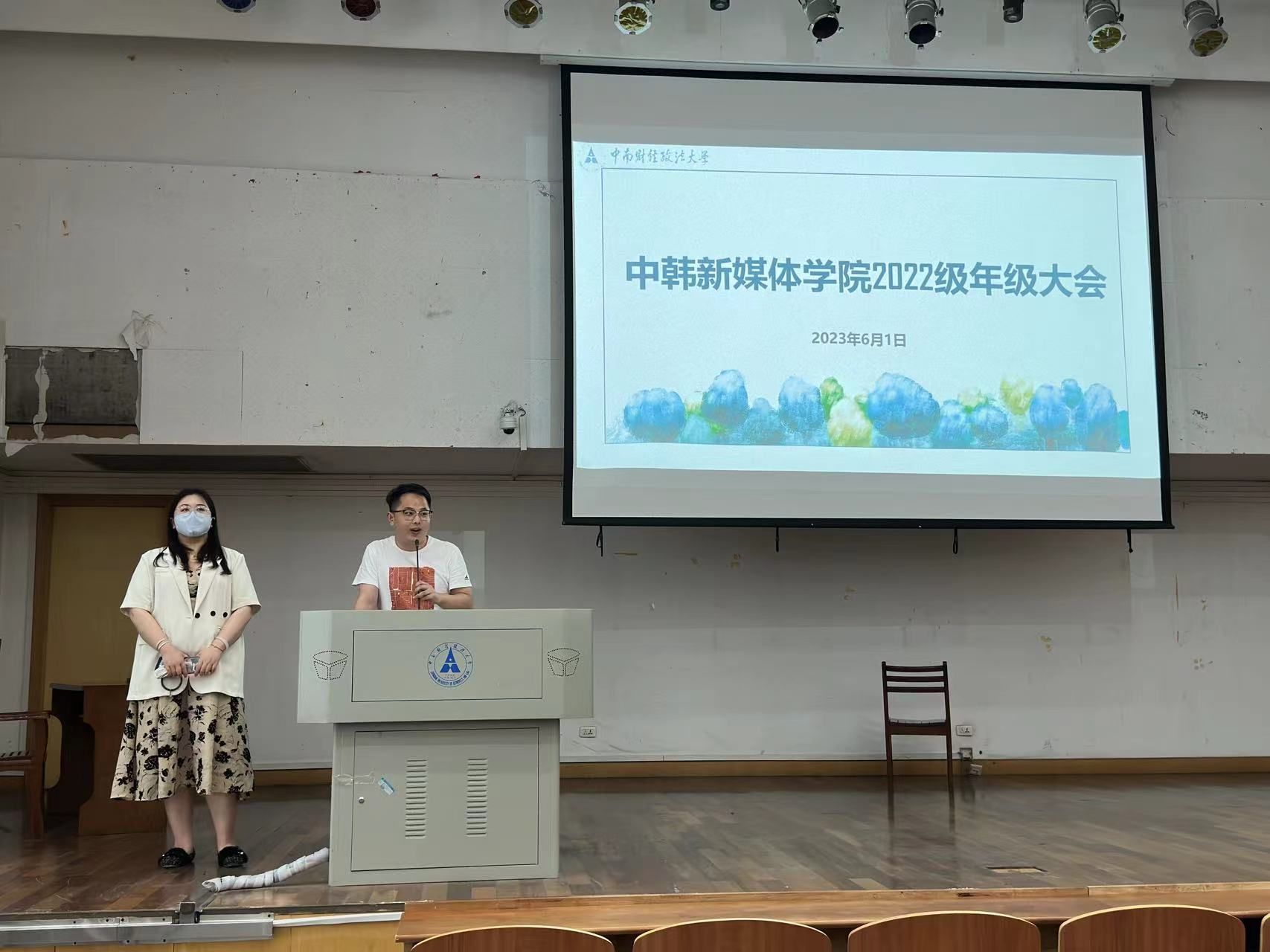2023年6月1日18:00,中韩新媒体学院2022级学生赴韩准备及暑假写生动员会在文澜楼111教室召开。由中韩新媒体学院副院长董玉芝,韩方行政主任张熙英,视觉传达设计教研室主任祁璇,电影学教研室韩方负责人袁品芳及部分参加写生的指导老师、2022级全体学生共同参会。会议由2022级视觉传达设计专业辅导员尤志兵主持。