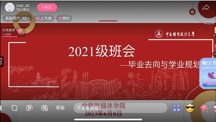 6月8日下午18:10分,中韩新媒体学院2021级学业规划主题线上班会在腾讯会议召开。学院学工办副主任尤志兵,2021级辅导员张迪及全体学生参会。