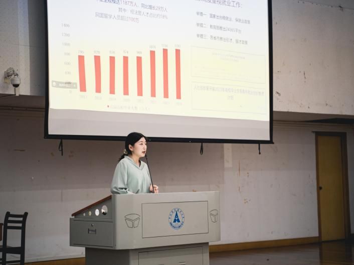 会议伊始,校就业指导服务中心郭婉钰老师结合往年就业数据介绍了我院近年来的毕业去向主要分为出国出境、国内升学、协议就业、自由职业以及自主创业五个方面,并对五方面的就业特点和就业趋势进行归纳总结,提醒同学们抓住重点就业时机,打好“提前战”,全面系统做好准备。