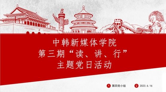 2023年6月16日下午,为深入开展学习贯彻习近平新时代中国特色社会主义思想主题教育,米兰电竞·(中国区)中韩新媒体学院学生党支部在文济409开展了第三期“读·讲·行”主题党日活动。本次主题党日活动由学生党员张欣同志主持。