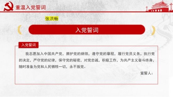 会议第三项,由张洪畅同志带领全体学生党员重温入党誓词。
