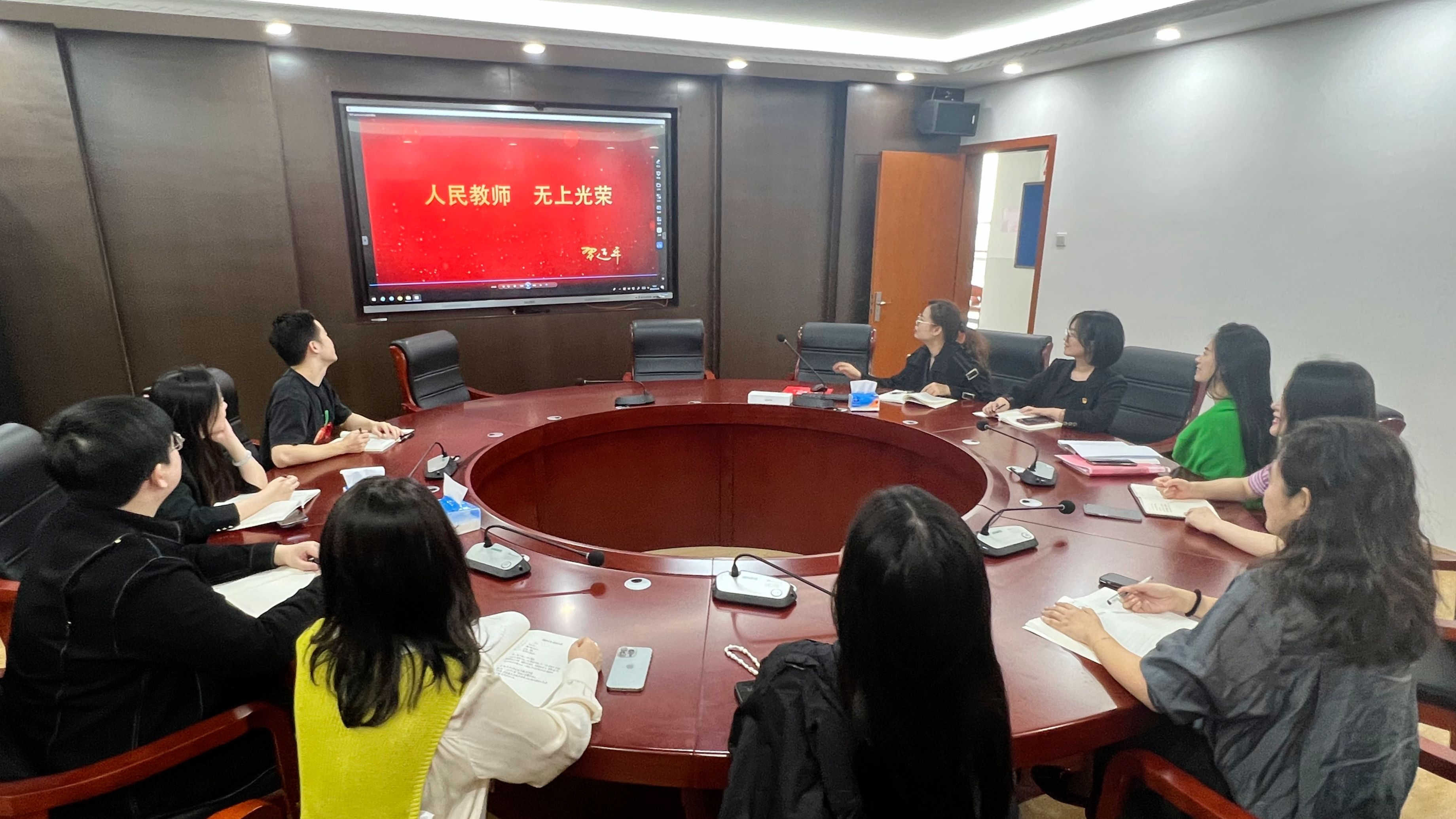 1. 专题学习: 由教研室主任祁璇老师领学学校发布的《关于深入推进教师思政和师德师风建设工作的通知》,组织教研室老师共同研读习近平总书记在“致全国优秀教师代表的信”一文中所诠释的“教育家精神”,共同观看由教育部和“学习强国”联合制作的《习近平的教师情》专题片,将为党育人、为国育才的初心使命,躬耕教坛、强国有我理想抱负内化于心、外化于行。