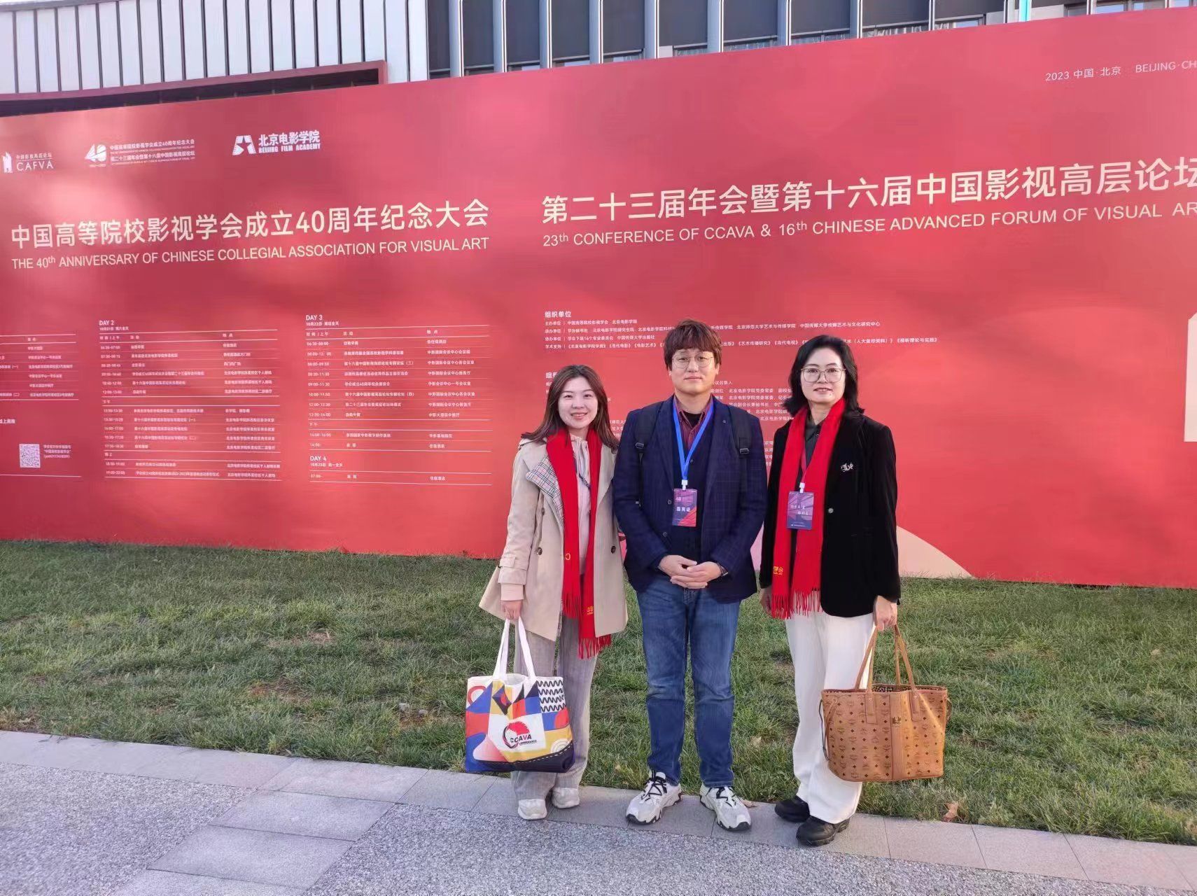 在全党全国深入学习贯彻习近平文化思想之际,2023年10月21日,中国高等院校影视学会成立40周年纪念大会、第二十三届年会暨第十六届中国影视高层论坛在北京电影学院怀柔校区盛大开幕。中韩新媒体学院副院长董玉芝教授同教师代表袁品芳、安晟佑参会。董玉芝在本次年会及论坛中主持专题论坛并作主题发言。