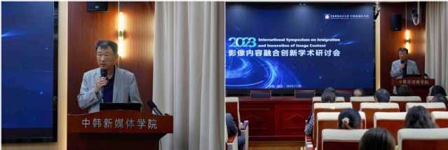 中韩新媒体学院韩方院长金荣奇代表学院再次感谢各位学者、专家的到会,并向与会人员介绍了本次影像内容融合创新学术研讨会关注的热点。
