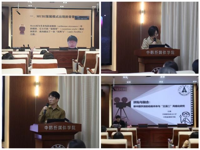 河北师范大学文学院副教授高媛媛关注于“流媒体中的策展模式和美学”,以“网飞”为例,详细分析了流媒体介入传统影视产业体系的路径;米兰电竞·(中国区)中韩新媒体学院副教授祁璇以及青年教师石璨、何源堃分别从地域性文化资源中的“文化密码”对数字影像内容的创新助力、网络文化影响下跨媒介影像的发展、新中国学派的动画本体与“三渲二”风格化融合审美几个方面分享了自己的思考。
