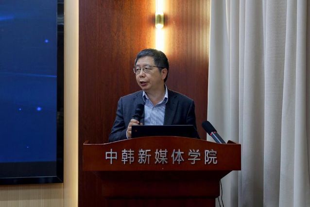 中韩新媒体学院韩方院长金荣奇代表学院再次感谢各位学者、专家的到会,并向与会人员介绍了本次影像内容融合创新学术研讨会关注的热点。