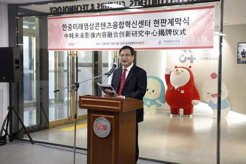 仪式中,东西大学校长张济国对中南大一行的到来表示热烈的欢迎。他指出,中韩新媒体学院在中南大校领导的关怀下,在东西大学IC学院的支持以及两校教职工的共同努力下,逐渐成长为教育部认可的,具有相当社会影响力的中外合作办学项目,成功为中韩两国培养出众多社会所需的专业人才。基于两校的共同意志,建立“中韩未来影像内容融合创新研究中心”,保障两校后续实现更高水平的研究合作及国际交流,推进两校间更紧密的联系,无疑意义深远。