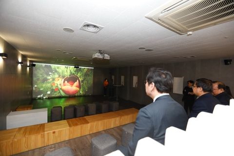 曹承佑主任带领各位嘉宾参观了揭牌仪式所在地XCCT研究中心,介绍了研究中心的基础设施、新技术的应用和研究环境,观看了师生获奖作品等。参观过程中,嘉宾们对东西大学未来影像内容的研究、实验环境的建设、新技术的研发与应用等方面展开了深入探讨,现场气氛热烈。