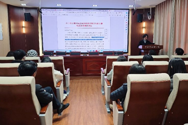 活动伊始,董玉芝副院长受邀出席,深入探讨了毕业指导中的一些问题。副院长对教师们的工作提出了具体的指导要求,通过自己的亲身经历,她分享了许多实用的经验和心得,同时耐心解答了大家在毕业指导过程中遇到的疑难问题。这次指导不仅为教师们提供了宝贵的经验,也为学生的毕业指导工作提供了更加有力的支持。随后教学秘书陈紫薇老师向教研室成员详细讲解了学校对于2024届本科生毕业论文管理工作的改革内容。在讲解中,她着重强调了各指导老师在指导本科生毕业论文和毕业设计时需要注意的基本事项。通过这次解读,教师们更清晰地了解了学校对毕业论文工作的新要求,为更好地指导学生提供了有力的支持。
