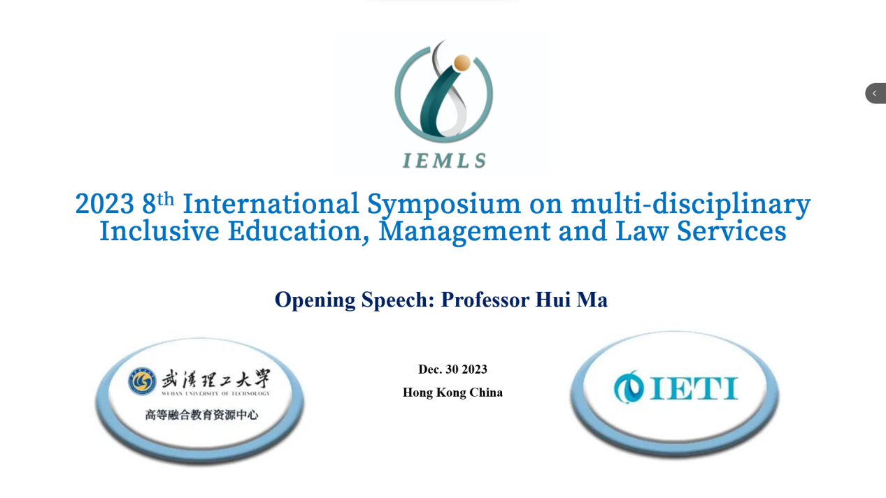 12月30日,2023年第八届多学科融合教育、管理与法律服务国际学术研讨会(IEMLS, International Symposium on multi-disciplinary Inclusive Education, Management and Law Services)在香港线上召开。此次会议汇聚了全球各地的专家、学者和学生代表,共同探讨多学科融合教育、管理与法律服务的未来发展趋势和挑战。我院学生王梓睿参会并做了《融媒体时代虚拟主播的传播路径及发展策略研究》的交流汇报。