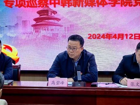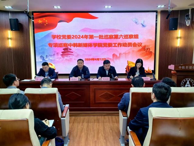 新闻网讯(通讯员 毛承东)根据校党委巡察工作统一部署安排,4月12日下午,学校党委2024年第一批巡察第六巡察组专项巡察中韩新媒体学院党委工作动员会议在文济楼409会议室召开。第六巡察组组长高碧峰,校纪委副书记、党委巡察办公室主任张文剑,党委巡察办公室副主任夏东伟,第六巡察组副组长吕保华、邓松、葛明、柳正华,第六巡察组成员杨晨、张立、胡盈、李颖、付瑜、杨安琪以及学院领导班子全体成员、党委委员、纪委委员、教工支部书记、教研室主任、全体党政管理人员和部分教师代表参会。会议由中韩新媒体学院副院长(主持行政工作)赵博雅主持。