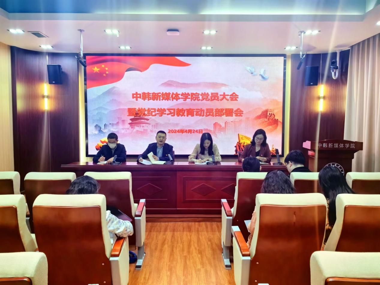 新闻网讯(通讯员 毛承东)为贯彻落实党中央、教育部党组和学校党委关于党纪学习教育的统一部署与要求,推进党纪学习教育走深走实,4月24日上午,中韩新媒体学院党委在文济楼409会议室召开全体党员大会暨党纪学习教育动员部署会。