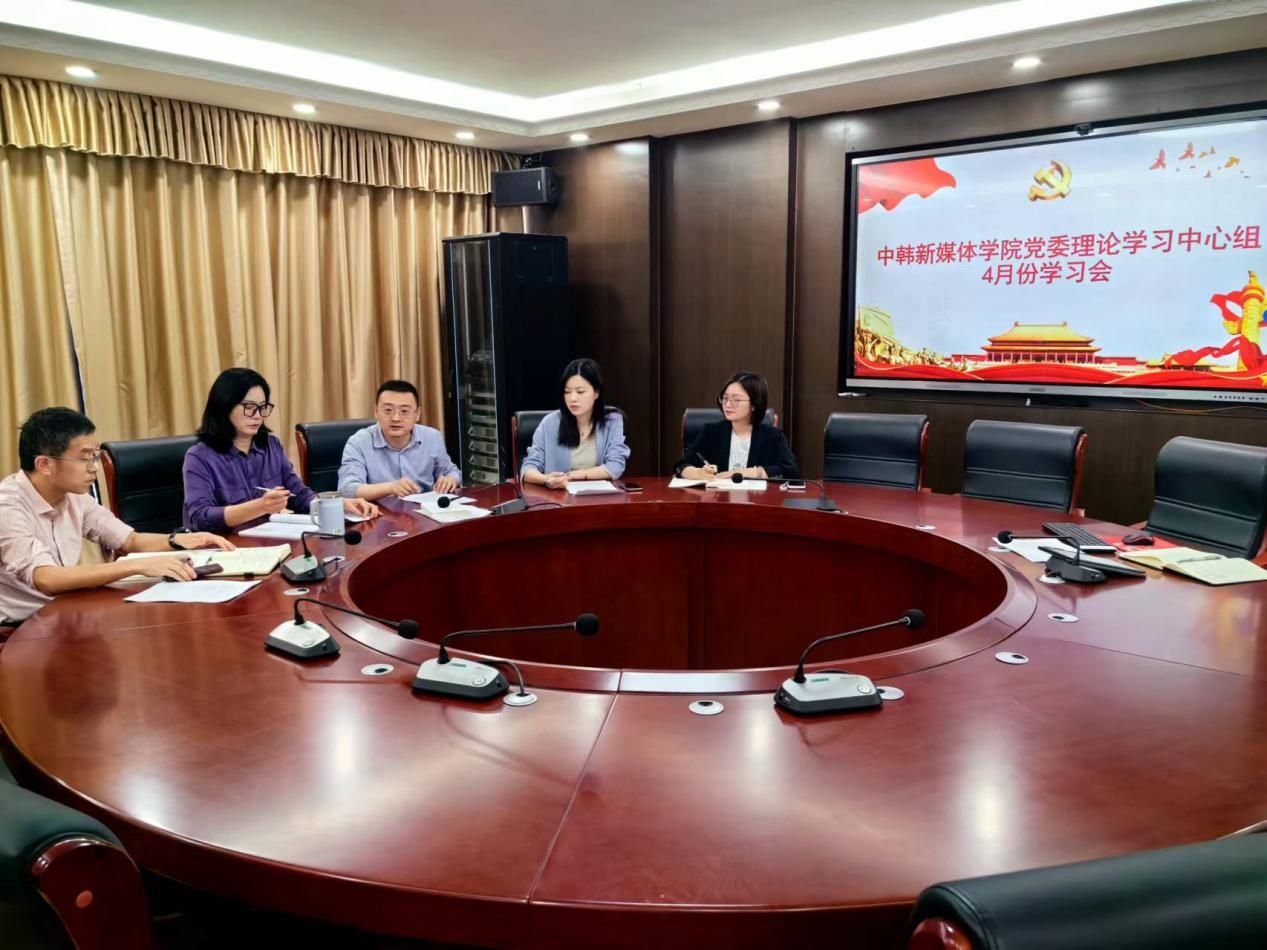 新闻网讯(通讯员 毛承东)为深入学习贯彻习近平新时代中国特色社会主义思想,4月26日,中韩新媒体学院党委中心组召开理论学习会。学习会由院党委书记于方主持。
