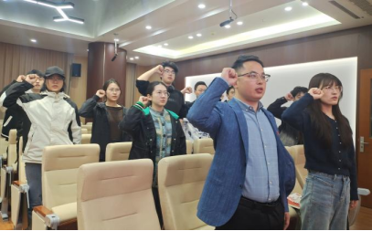会议第四项由袁迪同志带领全体学生党员重温入党誓词。