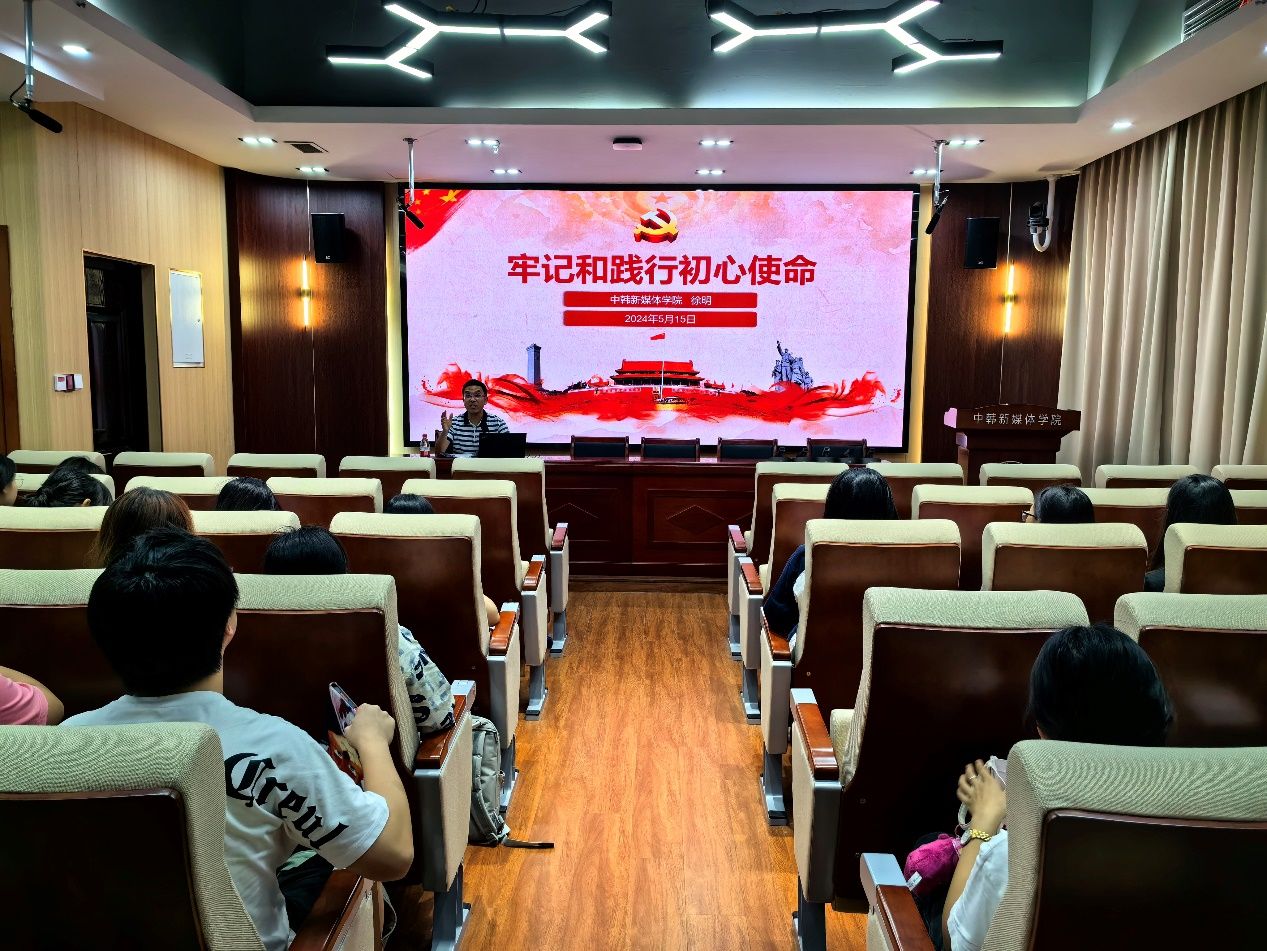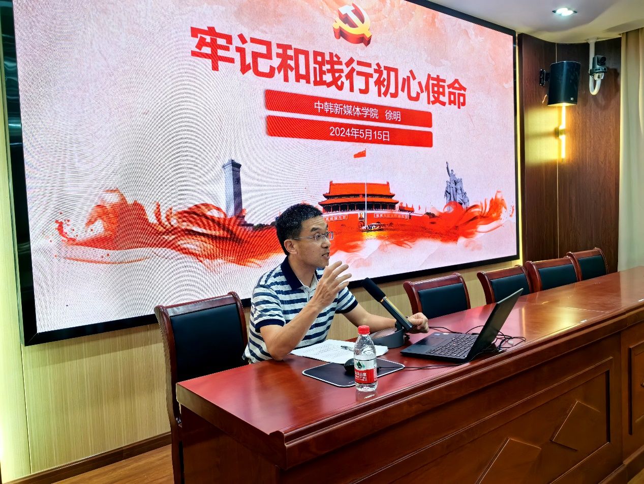 5月15日晚,中韩新媒体学院党委副书记、纪委书记徐明于文济409会议室,为2023级学生代表开展了以《牢记和践行初心使命》为题的专题讲座。徐明以一个问题“你读书上学的初心是什么,是为了什么”开始,引入阐述本次专题讲座的主题:中国共产党的初心与使命。本次讲座主要分为三个部分,一、中国共产党的初心使命;二、初心使命的衡量标准;三、如何践行初心使命。