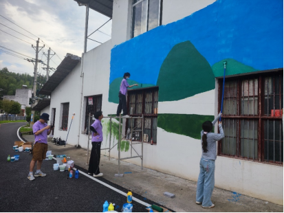 7月10-13日,“文化墙彩绘组”着手进行文化墙绘制,勾勒轮廓、平铺大色、细节绘制,大家积极投入其中、各展所长。“纪录片拍摄组”在村庄内采集人文和风景素材,对相关人员进行采访记录,为当地老人公益拍摄照片。“文创品制作组”与当地村民进行交流与沟通,前往红石村的产业基地进行调研,充分了解红石村的产业振兴现状。